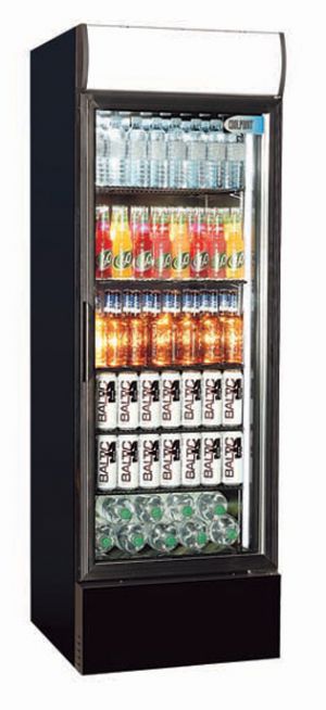 The CX405 is finished in black and the unit is supplied with 5 fully adjustable shelves, mechanical thermostat, LED internal lighting, a lighted and highy "brandable" header panel, double glazed glass door, fan assisted and has R134a gas or R290 (if required).